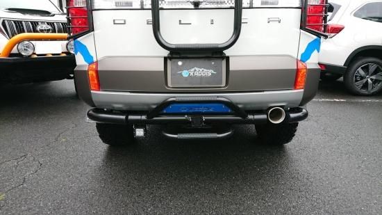デリカD:5を4inch以上アップさせた場合必要となるリア追突防止装置。 構造変更、継続車検を受験する際には必ず必要となります。 KADDISリアサイドガードは陸運局より提示された条件(角度・面積等)を満たす製品となります。 パイプ径はトレイルヒッチと同じ76.3Φを採用 ※画像のバックランプは含まれておりませんのでご了承下さい。 ●材質:スチール製 ブラック粉体塗装仕上げ ●商品構成:サイドガード本体 ・取付ブラケット ・付属品一式 ●取付情報:取付けはボルトオンタイプのため無加工です。 ※個体差及び取付時の寸法誤差によりトレイルヒッチとの段差が出る場合がございます。 その場合は取付ブラケットや取付穴等で修正する必要がございます。